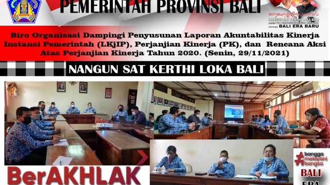 Senin (29/11/2021), Biro Organisasi Dampingi Penyusunan Laporan Akuntabilitas Kinerja Instansi Pemerintah (LKjIP), Perjanjian Kinerja (PK), dan Rencana Aksi Atas Perjanjian Kinerja Tahun 2020. Pendampingan dilakukan dua sesi mengingat harus tetap mengutamakan prokes yang ketat.