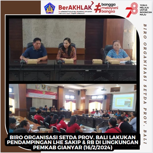 Biro Organisasi Setda Prov. Bali Lakukan Pendampingan LHE Sakip & RB Di Lingkungan Pemkab Gianyar (16/2/24)