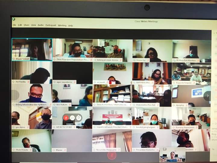 2015 tentang Road Map Reformasi Birokrasi Tahun 2015-2019, telah dilaksanakan PMPRB bagi seluruh PD/Unit Kerja di Lingkungan Pemerintah Provinsi Bali, dan kami sampaikan 10 PD/Unit kerja yang memperoleh nilai tertinggi dalam pengisian LKE PMPRB berdasarkan hasil asesmen dari Inspektorat,Rapat Tim RB PD/Unit Kerja masing-masing untuk mengikuti video conference melalui aplikasi Webex Meeting.