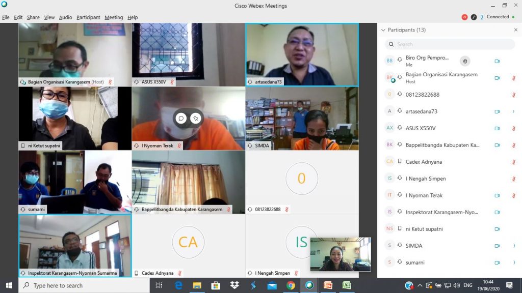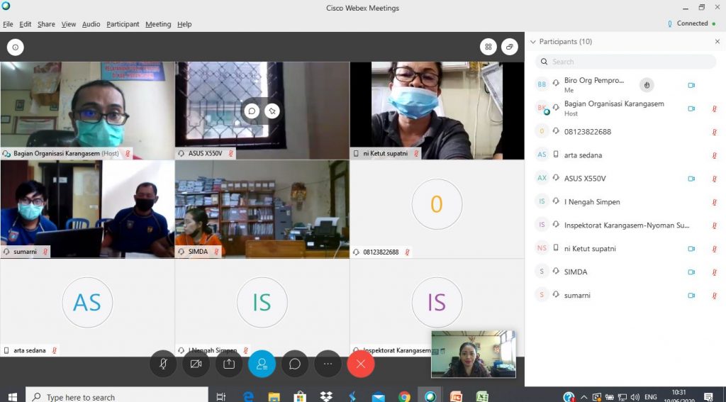 Pendampingan dalam pengisian Penilaian Mandiri Pelaksanaan Reformasi Birokrasi (PMPRB) Online tahun 2020 di lingkungan Pemerintah Kabupaten Karangasem yang di buka oleh Kepala Bagian Organisasi Kabupaten Karangasem dan didampingi oleh pejabat yang membidangi Reformasi Birokrasi pada Biro Organisasi Setda Provinsi Bali.