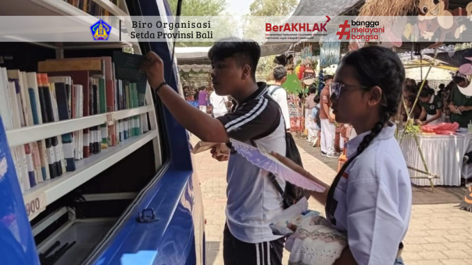Mobil Perpustakaan Keliling juga hadir setiap hari minggu di seputaran Monumen Bajra Sandhi.