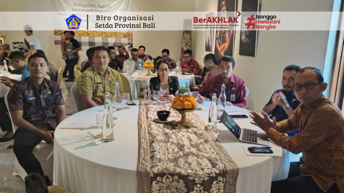 Biro Organisasi Setda Provinsi Bali menghadiri pertemuan konsultasi publik Rancangan Dokumen Rencana Penanggulangan Bencana Provinsi Bali 2025-2029, bertempat di Ruang pertemuan Sudamala Suites & Villas Sanur Kota Denpasar.